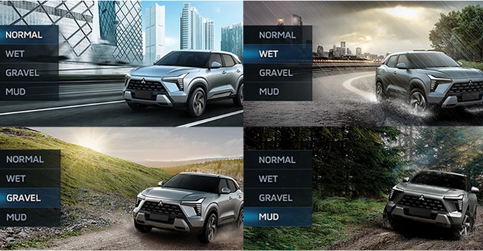 Terdapat empat mode berkendara yang bisa diatur pengemudi, yaitu Normal, Wet, Gravel, dan Mud.