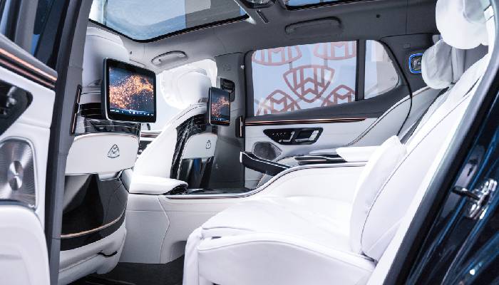 Pada bagian interior Mercedes-Maybach EQS 680 SUV hadir dengan material alami berkualitas tinggi dengan adanya MBUX Hyperscreen dengan ‘Zero Layer’.