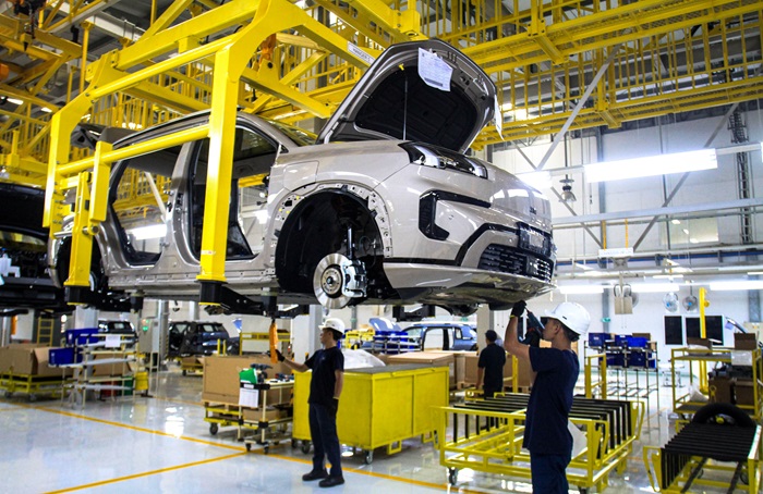 Proses perakitan mobil listik Aion V di fasilitas milik PT National Assemblers (Foto: Aion Indonesia)