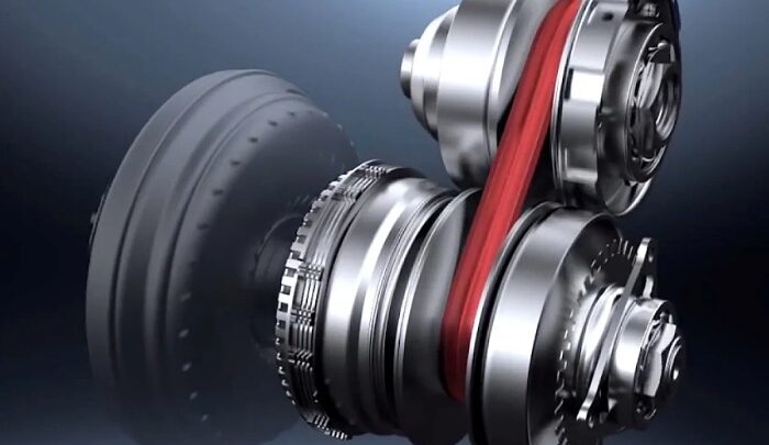 Sebagai gantinya, CVT memanfaatkan sepasang puli dan sabuk baja yang dapat berubah diameter secara terus-menerus.