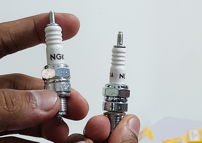 Selain itu, busi asli memiliki plating dengan warna yang tidak terlalu cerah, berbeda dengan busi palsu cenderung lebih terang.