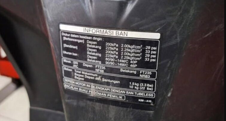 Selain itu, tekanan angin juga perlu disesuaikan antara penggunaan motor seorang diri atau saat berboncengan.