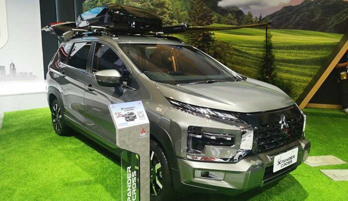 Modifikasi pertama yang menarik perhatian adalah Mitsubishi Xpander Cross dengan tema “Comfort x Outdoor with Family”. Mobil ini mendapatkan tambahan aksesori berupa roof box dan side awning di bagian atapnya.