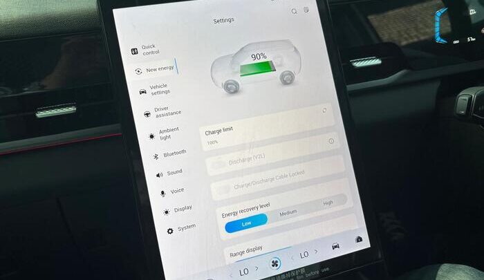 Terlihat pada head unit J5 EV, daya baterai menunjukkan angka 90 persen sebelum berkendara. Carmudi menggunakan semua mode berkendara yang ada selama test drive, yaitu normal, eco, dan sport.