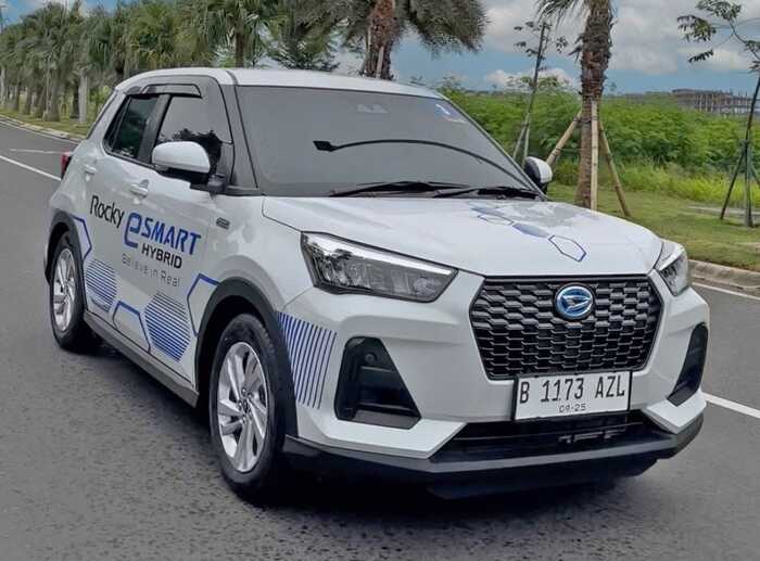 Satu contoh model mobil dengan series hybrid, yaitu Daihatsu Rocky e-Smart Hybrid.