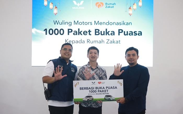 Penyerahan donasi 1.000 Paket Berbagi Buka Puasa dari Wuling Motors kepada Rumah Zakat yang turut disaksikan oleh perwakilan komunitas resmi WBiC (Foto: Wuling)